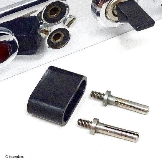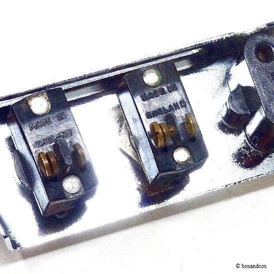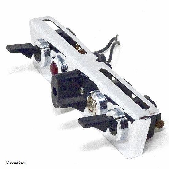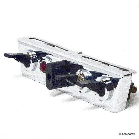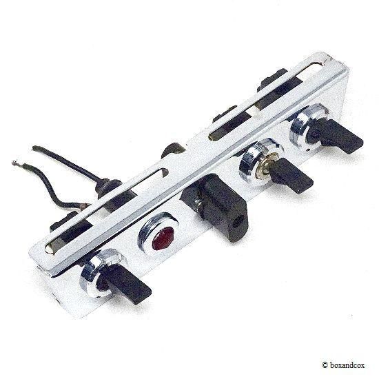 現代の物とは全く違う、重厚な深いクロームメッキのパネルに、LUCASとは違う独特の形状のOFF-ONのトグルスイッチ、現代の物にはないダイヤカットレンズのワーニングランプ、ピンプラグ&ソケットは、当時の雰囲気を文句なしに演出してくれます。