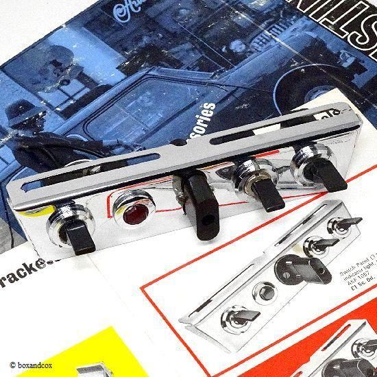 クロームメッキのパネルには、3つのトグルスイッチ、ダイヤカットレンズのワーニングランプ、中央にはアクセサリー等に使用できる