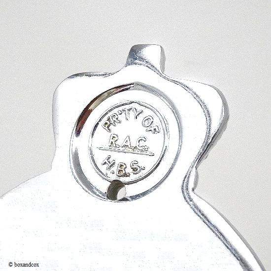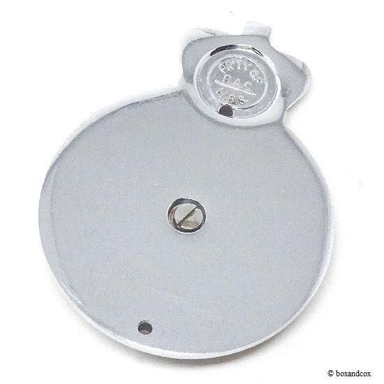 裏面は鏡のような(画像参照)ピカピカのクロームメッキ仕上「PR'TY OF R.A.C. H.B.S.」の刻印があります。