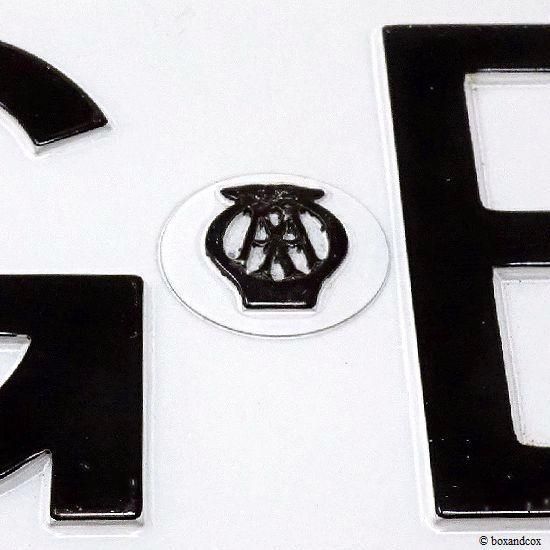 愛車に当時の雰囲気が感じられるドレスアップに、またコレクション・オートモビリアとして、AAマーク入りのGBプレートは素敵です。