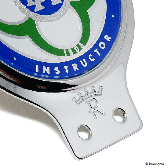 1950-60年代の RACのエンブレムが中央に入り、RACのロイヤルブルーカラーに囲まれた、目を惹くバッジとなっています。