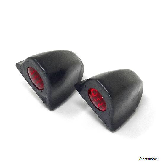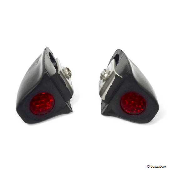 後方に赤い反射レンズがついたブラックラバーのドアバッファ/プロテクターです。
